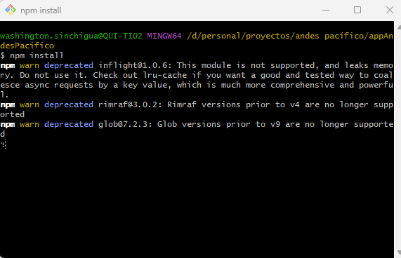 Abre una terminal y ejecutamos npm install